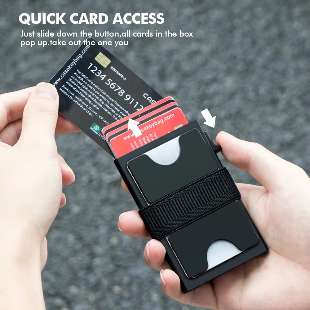 Quickly access your cards with a single push. The smart pop-up system neatly fans out your cards, making selection fast and effortless—perfect for daily use, travel, and business.
