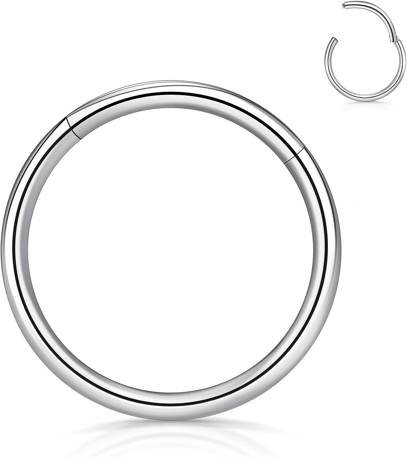 | 1 | Perfect for Nose, Cartilage, Septum, Tragus Piercings,Helix Earring, Daith,Conch,Rook Ear Piercing, Lip Rings, Belly Ring,Nipple Piercing and more. Very easy to open/close a click closure by hand. Not require a tool.Smooth surface, comfortable to wear without sharp edge. Match with suitable apparel for different occasion. Smooth Surface and easy to use. |